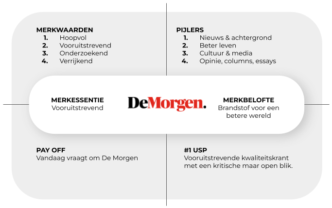 De Morgen is de meest vooruitstrevende nieuwstitel van Vlaanderen. Met heldere, diepgaande en inspirerende kwaliteitsjournalistiek bieden wij een kritische, onderzoekende en hoopvolle blik op een complexe wereld en dragen we bij aan een dieper begrip, een rijker leven en een mooiere toekomst voor iedereen. (De Morgen is multimediaal en mikt op 70.000 abonnees en 500.000 unieke bezoekers per dag)