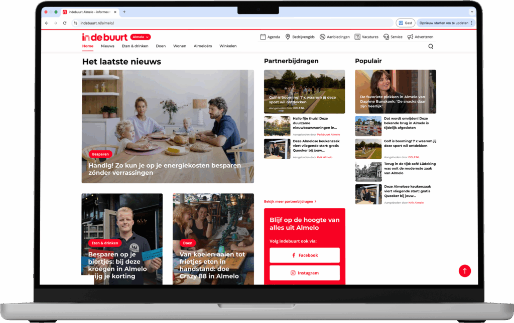Indebuurt is met het grootste netwerk van lokale nieuwssites (60+ steden) de gids voor het stadse leven in Nederland. De plek waar inwoners, ondernemers en bezoekers van de stad elkaar vinden. Onze redacteuren ter plaatse bieden, in een optimistische en toegankelijke stijl, een unieke combinatie van positieve en praktische nieuwtjes, inspiratie voor activiteiten in de stad en een platform voor mooie verhalen van ondernemende en opvallende mensen in de buurt.