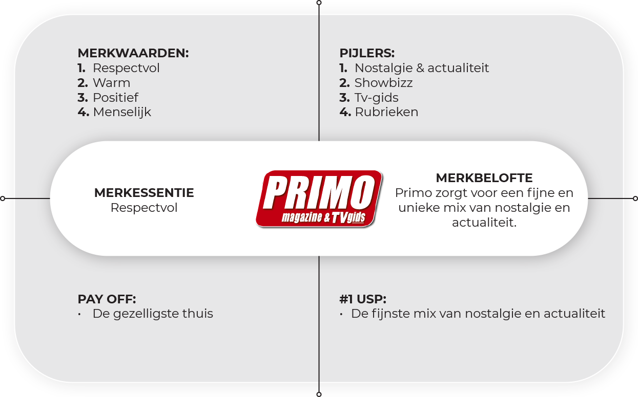 Primo is er voor de Vlaamse 50-plussers op zoek naar een betaalbaar tv-blad, aangevuld met een gevarieerde mix aan interessante rubrieken en een uitgebreid puzzelaanbod.