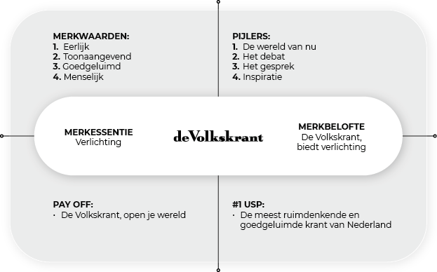 De Volkskrant is de eerlijkste en meest inspirerende kwaliteitskrant (print, digitaal, audio) die verlichting biedt aan de samenleving en haar vooruitstrevende burgers die de mens en de wereld beter willen begrijpen. Burgers die een sterke democratie belangrijk vinden, positief willen bijdragen aan het maatschappelijk debat en geïnspireerd willen worden het leven nog meer kleur te geven.