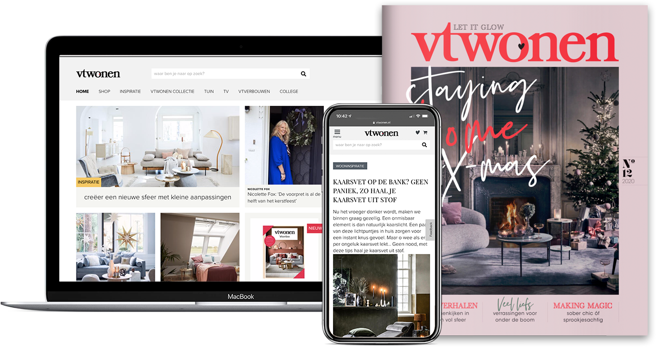 Bij vtwonen vind je alles over styling (tips en inspiratie om woonstijlen te mixen en matchen, nieuwe trends te ontdekken en deze te combineren tot jouw eigen stijl). We trakteren je op binnenkijken & makeovers (persoonlijke verhalen, voor-en-na transformaties en inspiratie uit de ervaring van anderen). We bieden guidance (praktische hulp en tips voor interieur en tuinieren) en helpen je bij het shoppen (curatie van producten, onze eigen licentiecollecties en tips waar je deze kunt kopen – van de vtwonenshop tot de leukste winkeladresjes).