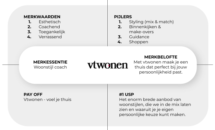 Wij zijn esthetisch (we willen je inspireren en alles mooier maken ) en coachend (niet belerend of voorschrijvend, maar helpend en informatief). We zijn toegankelijk (met een one-stop-platform voor inspiratie, praktische hulp, toepasbare oplossingen en aankoop) en willen steeds weer verrassend zijn (we laten graag iets nieuws en bijzonders zien, met een optimistische en positieve insteek).