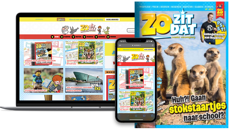 Zo Zit Dat informeert en inspireert je daarom over onderwerpen als dier & natuur, sport & avontuur, wetenschap & techniek en vertelt je alles over computer, games en fun (quizzen, breinkrakers, puzzels en strips).